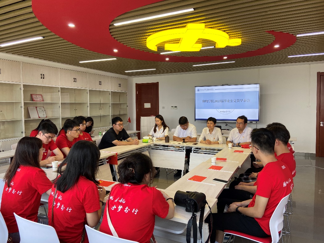 612日清晨,sunbet“明理拾光”2023届毕业生党员早茶会在翡翠科教楼B704举行,公司党委相关负责同志、本科生党支部委员与全体毕业生党员参加活动。