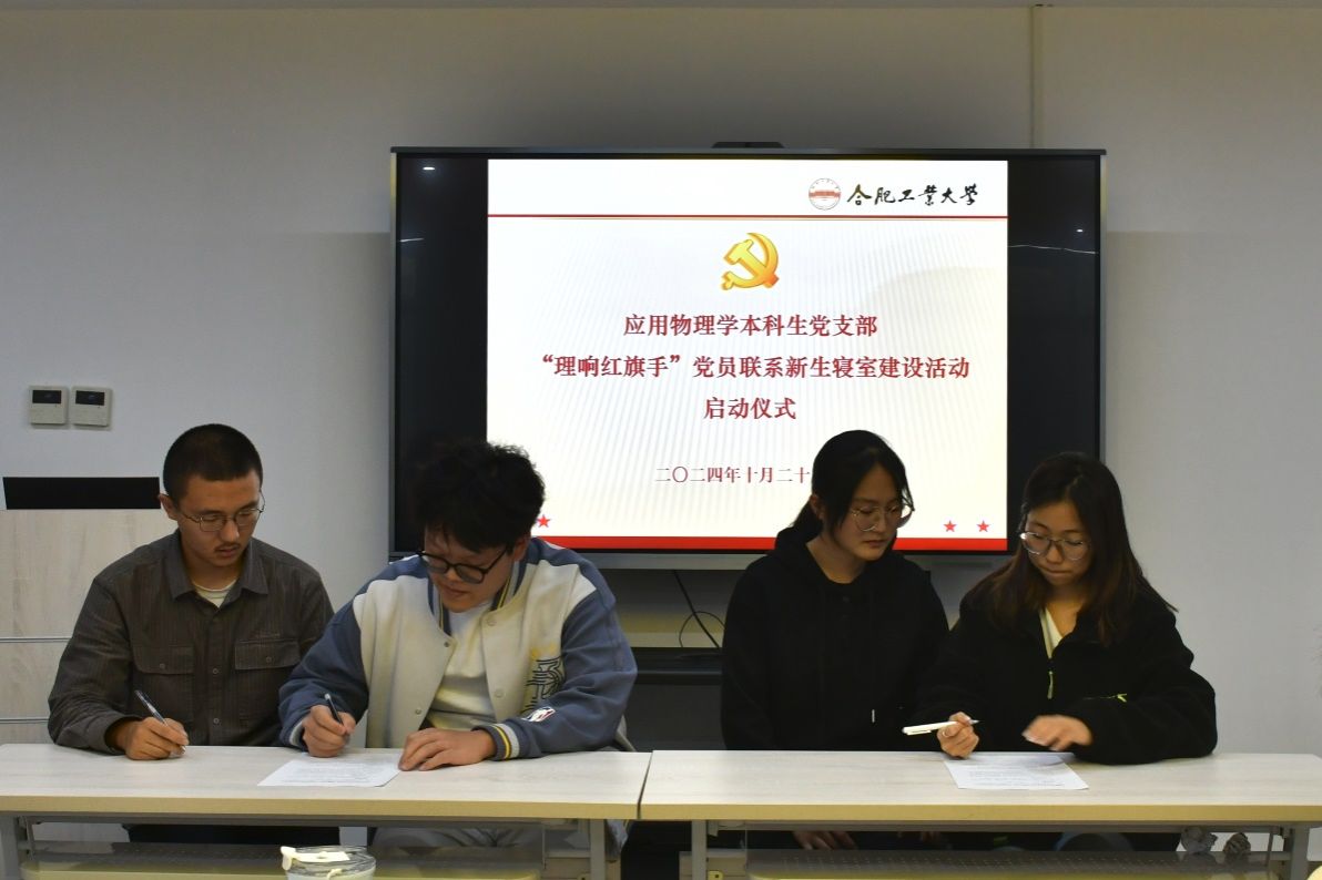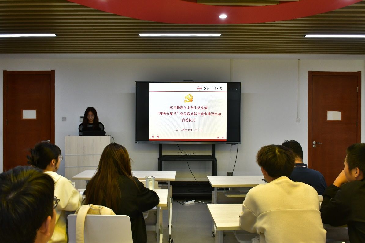 1025日,sunbet应用物理学本科生党支部“理响红旗手”寝室共建活动启动仪式在翡翠科教楼B704举行,党支部全体党员及全体新生寝室长参加此次仪式。
