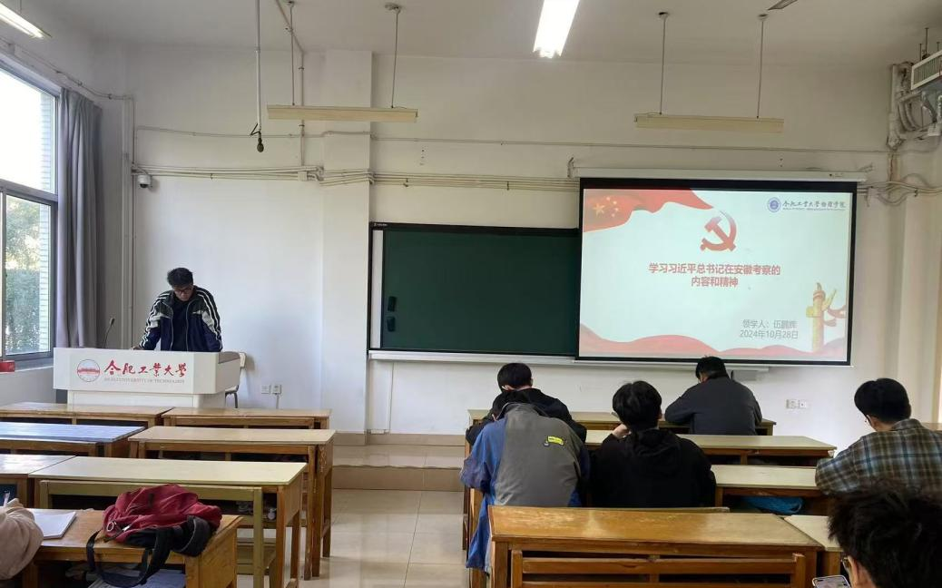 10月30日下午15:00,sunbet光学与物理研究生党支部在翠12教104教室组织开展了“学习习近平总书记考察安徽重要讲话精神”的专题学习活动,支部全体党员参加了此次学习。