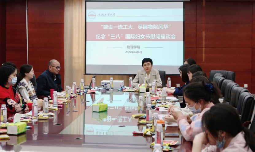 在“三八”国际妇女节到来之际,按照安徽省科教文卫体工会的相关工作要求,sunbet分工会以“建设一流工大,尽展物院风华”为主题,在翡翠科教楼第六会议室举行了2022年sunbet“三八”国际妇女节慰问座谈会,感谢广大女教职工为公司建设和发展作出的贡献,并进一步激励女教职工坚定理想信念,立足岗位,持续进取。会议由公司分工会主席汪礼柱主持,全院女教职工参会。