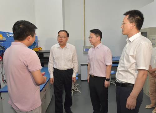 在翡翠科教楼,唐良智一行参观了公司微电子公司、sunbet有关实验室。微电子公司是安徽高校首个微电子公司,2015年获批筹建国家示范性微电子公司,在集成电路设计、半导体器件与集成技术、电磁场和微波技术等多个领域形成了鲜明特色和显著学科优势。在sunbet量子精密测量、量子计算实验室,唐良智一行详细了解实验室建设运行情况和最新科研成果,鼓励科研人员坚持面向国家重大需求、面向经济主战场,精准对接安徽省十大战新产业,再接再厉、再攀高峰,努力攻克“卡脖子”技术难题,为国家发展特别是安徽省“三地一区”建设增添新动能。