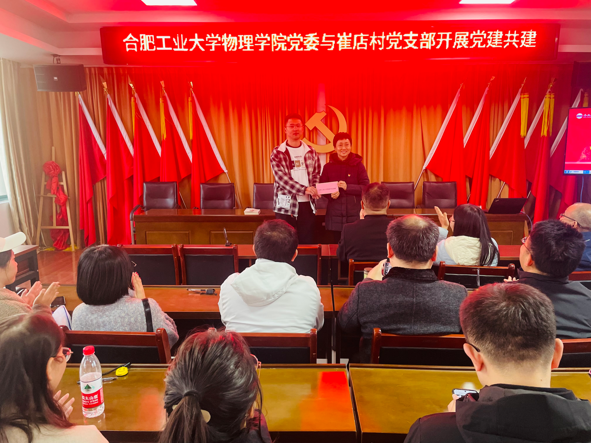 为提高教职工政治理论学习成效,推动学习成果转化为指导实践的内生动力,11月16日,物理公司党委理论学习中心组成员、公司教师和党员代表前往六安市金安区崔店村开展专题党课、理论学习和交流实践活动,并向崔店村党支部进行捐赠。