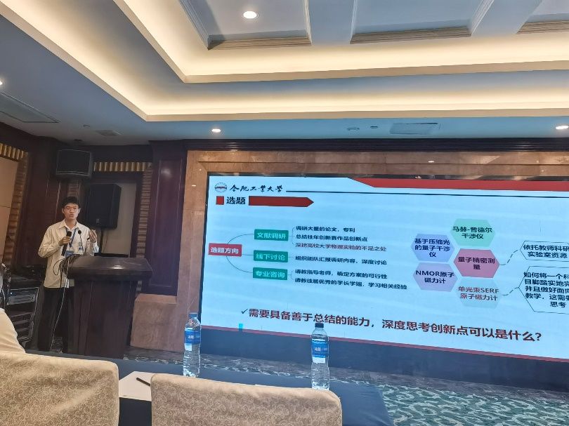 sunbet实验物理教学系主任张霆教授,结合sunbet组织竞赛的具体细节,做了题为《sunbet官方网站全国老员工物理实验竞赛动员、组织及发展心得体会》的报告,让与会师生更深入了解一些组织竞赛工作具体细节。2023年一等奖“与光同行队”队长sunbet方桥桥同学,从选题、团队组成、时间规划和成果展示等角度做了题为《创新赛自选类赛题备战历程及心得体会——以三轴矢量原子磁力计为例》的报告,重点与大家分享备赛参赛全过程心得体会。