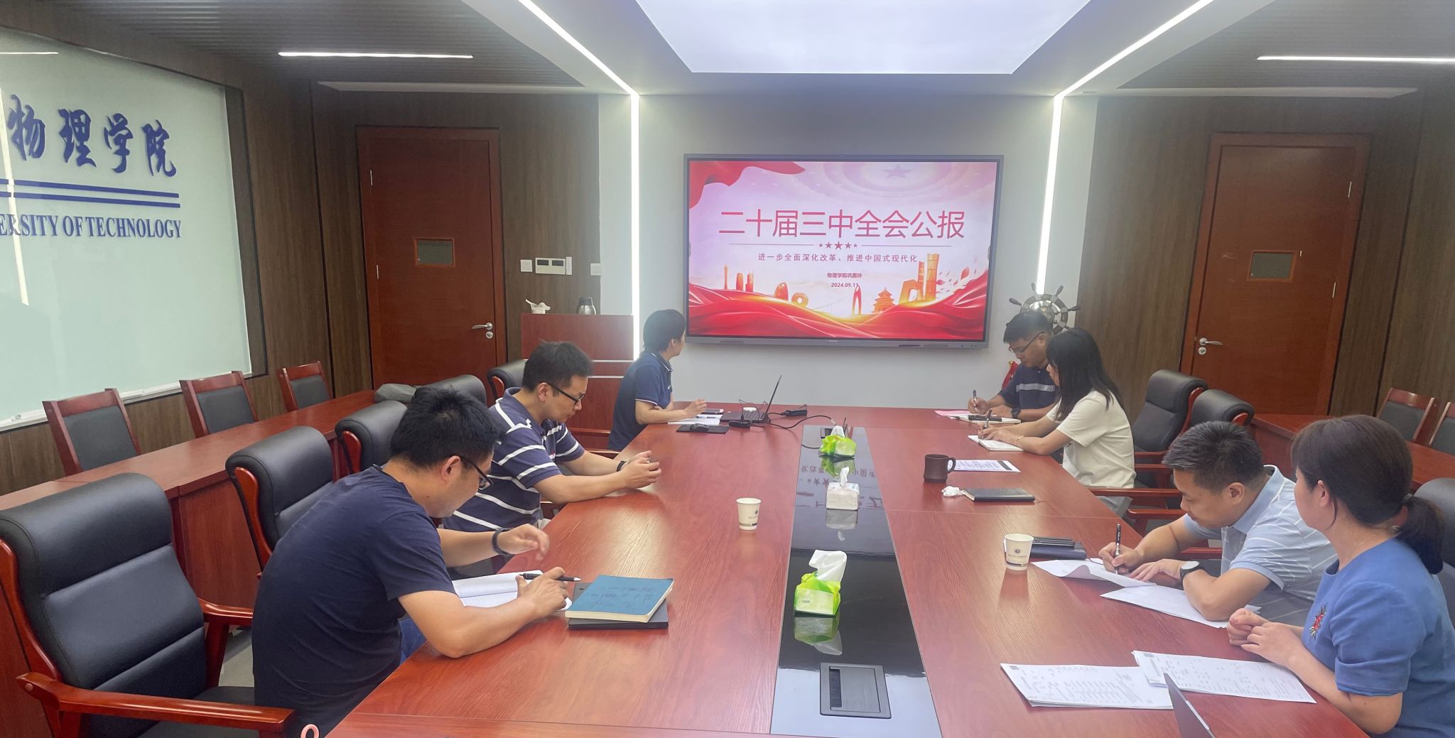 为深入学习贯彻党的二十届三中全会精神,扎实推进各项事业高质量发展,物理公司党委于9月11日在翡翠科教楼B座706会议室召开“学习贯彻党的二十届三中全会精神”专题研讨会。会议由公司党委书记巩惠玲主持,公司领导班子成员、公司党委委员、师生党支部书记参加研讨。