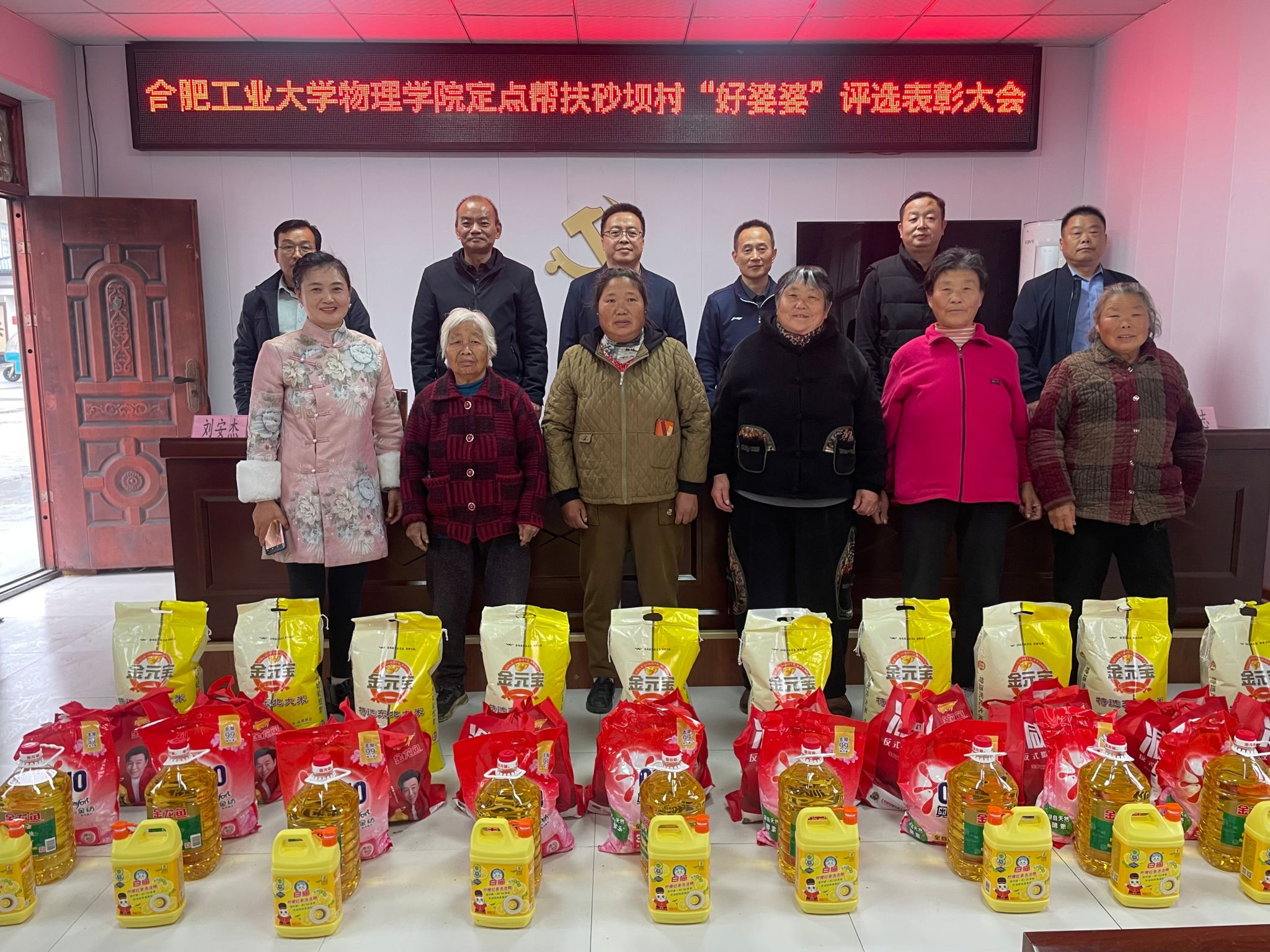 当日下午,sunbet在砂坝村举行了“好婆婆”赠礼表彰暨定点帮扶慰问活动,对评选出的“好婆婆”家庭以及部分低保人员进行了表彰和慰问,送去了公司的关怀与温暖。
