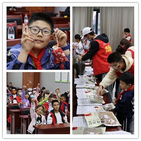 应用物理学22-1班团支部来到集贤社区少工委,带领社区少先队员手工制作中药香囊,亲身体验劳动的乐趣,品悟中华优秀传统文化。共青团员们首先通过讲解《离骚》名句“扈江离与辟芷兮,纫秋兰以为佩”,向少先队员介绍了人们佩戴中药香囊的悠久传统和屈原高洁的道德情操,然后介绍了香囊的制作方法和各种药材的功效。中药香囊源自中医里的“衣冠疗法”,充分体现了中医“治未病”的思想,佩戴香囊是一种驱邪解毒预防瘟疫的方法,具有预防流感、芳香辟秽、防蚊驱虫、醒神开窍的作用,是中华民族传统文化的一颗明珠。之后,团员们带领少先队员们亲自尝试,抓取佩兰、白芷、陈皮、艾草、薄荷、紫苏等药材,手把手的教少先队员制作属于自己的香囊。本次实践一方面让少先队员们认识到中医药是中华文明的一个瑰宝,凝聚着中国人民和中华民族的博大智慧,在抗击新冠肺炎疫情中的优异表现和突出贡献,为增进人民健康作出了重要贡献;另一方面让少先队员亲身体验劳动的乐趣,明白了劳动最光荣、劳动最崇高、劳动最伟大、劳动最美丽的道理。