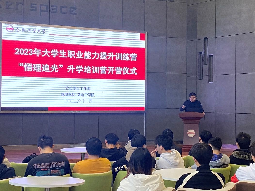 仪式后,sunbet物理系主任陈冰、光学工程系主任王飞分别做了主题报告。两位老师围绕同学们最关心的问题,从如何选择专业院校、如何确定研究方向、如何平衡考研复习和日常学习的关系等话题展开,与学员们进行了深入的交流,引导学员认识自身优势,树立正确的科研观,注重能力的提升,积极参与实践锻炼,保持积极乐观的心态。
