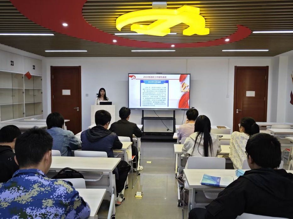 开课仪式结束后,辅导员陶候主讲了第一次团课。陶候从2024年政府工作报告引入,围绕2024年经济社会发展总体要求和政策取向进行重点讲解,结合公司公司的育人目标,勉励全体学员积极学习专业知识,努力成为创新型人才,勇立时代潮头,用敢于创新的精神体现青年风貌,用实实在在的行动践行自己的入团誓言。