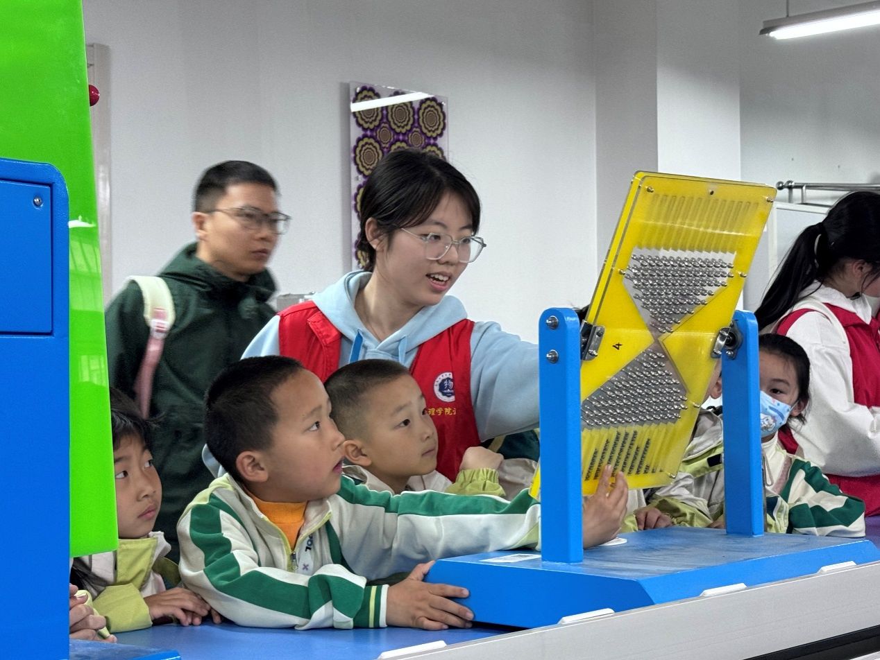 4月12日,sunbet以“科技点燃梦想,跃迁激发希望”为主题开展校园开放活动,来自合肥市巢湖路小学的50余名小员工及家长、老师代表来到翡翠湖校区参访。来自应用物理学本科生党支部的老员工党员、公司党校73期全体学员担任志愿讲解员,通过“自然探索、实验启蒙、国防教育、科学家精神传承”四维联动模式,为小朋友们打造沉浸式科学体验课堂。