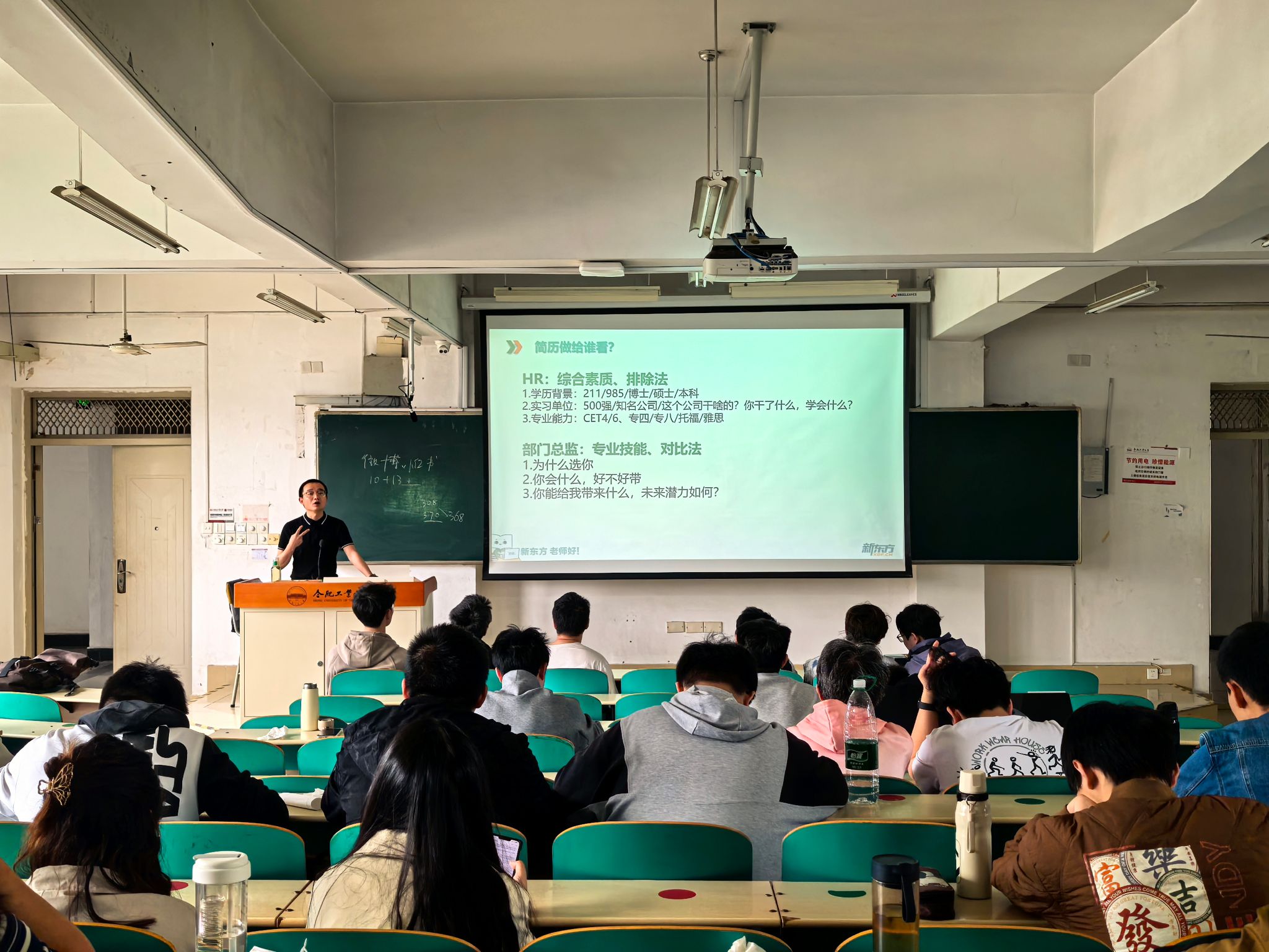 为提升sunbet本科生求职竞争力,公司于2025年4月12日在翠五教学楼208教室举办“格物穷理·知行合一”简历制作培训会,活动特邀新东方教育科技集团合肥公司人力资源部刘龙担任主讲,2022级全体本科生参加。