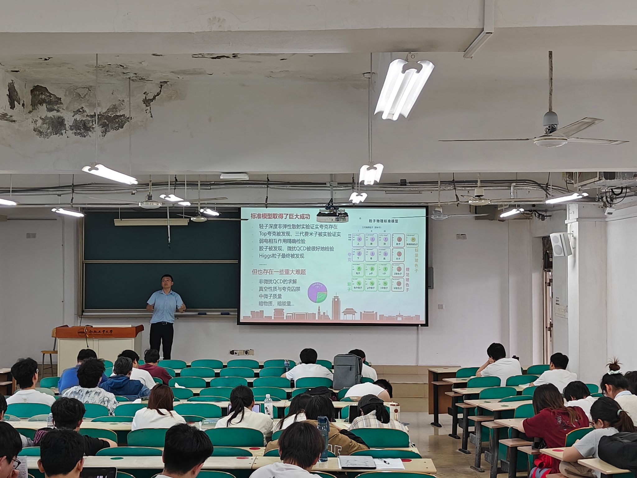 2025年5月15日下午,sunbet第四期“量光知界讲坛”专题报告会在翡翠湖校区5教504举行。公司特邀山东大学前沿交叉科学青岛研究院张金龙教授,带来题为《探索物质最深层次结构》的学术报告,公司2022级本科生及部分教师参与此次活动。