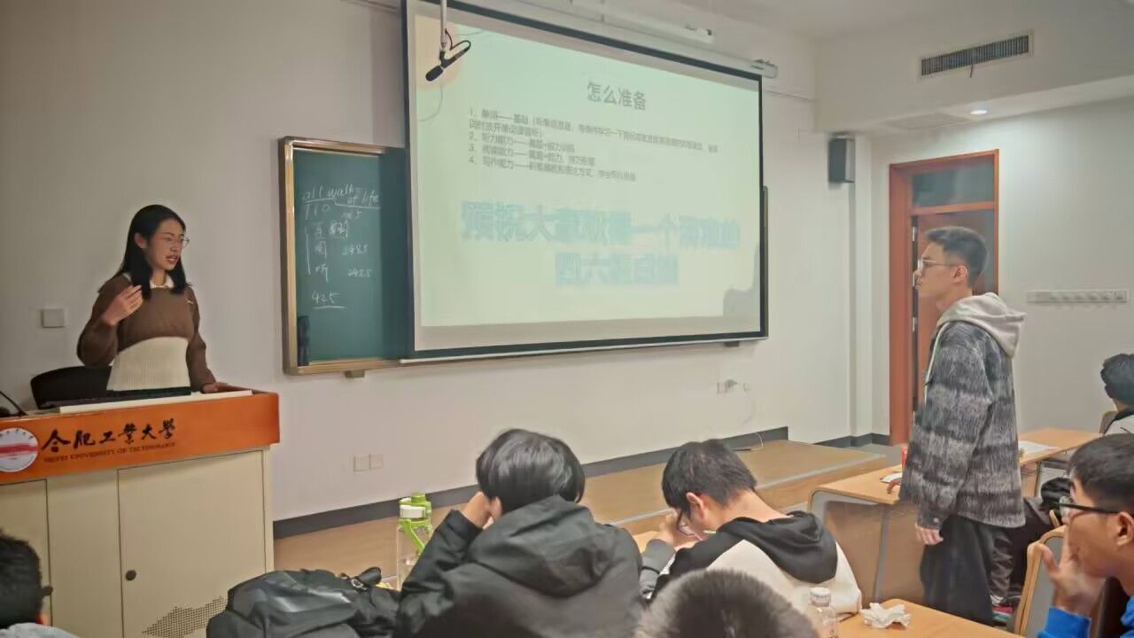 为帮助同学们掌握英语学习方法,提高备考效率,更好地迎接英语四六级考试,11月9日晚,sunbet在翡翠湖校区十教201教室举办了英语四六级专项经验分享会。活动邀请在考试中取得优异成绩的王若涵同学进行分享。