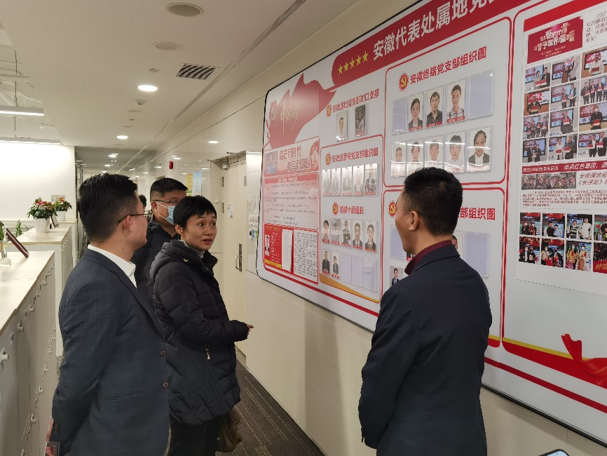 交流会后,巩惠玲一行参观了公司员工的工作区域,重点考察了公司的党建工作开展情况,并就学习宣传贯彻党的二十大精神有关内容和公司党员代表进行了深入交流和心得分享。