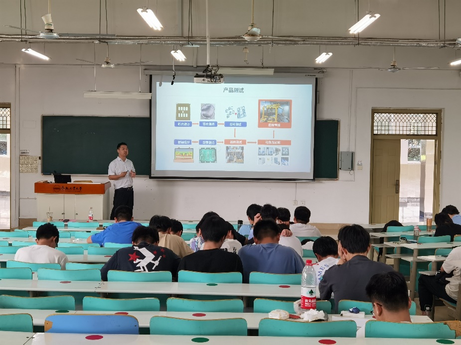 下午株洲中车时代半导体有限公司一行在翡翠湖校区为sunbet、微电子公司老员工带来了精彩讲座。该公司芯片技术专家、公司06届员工姚震洋,招聘经理何贻海分别围绕半导体产业发展、高功率半导体器件技术等内容为同学们进行了分享交流,并向同学们提出了“练就本领、工业报国、产业报国”的倡议。
