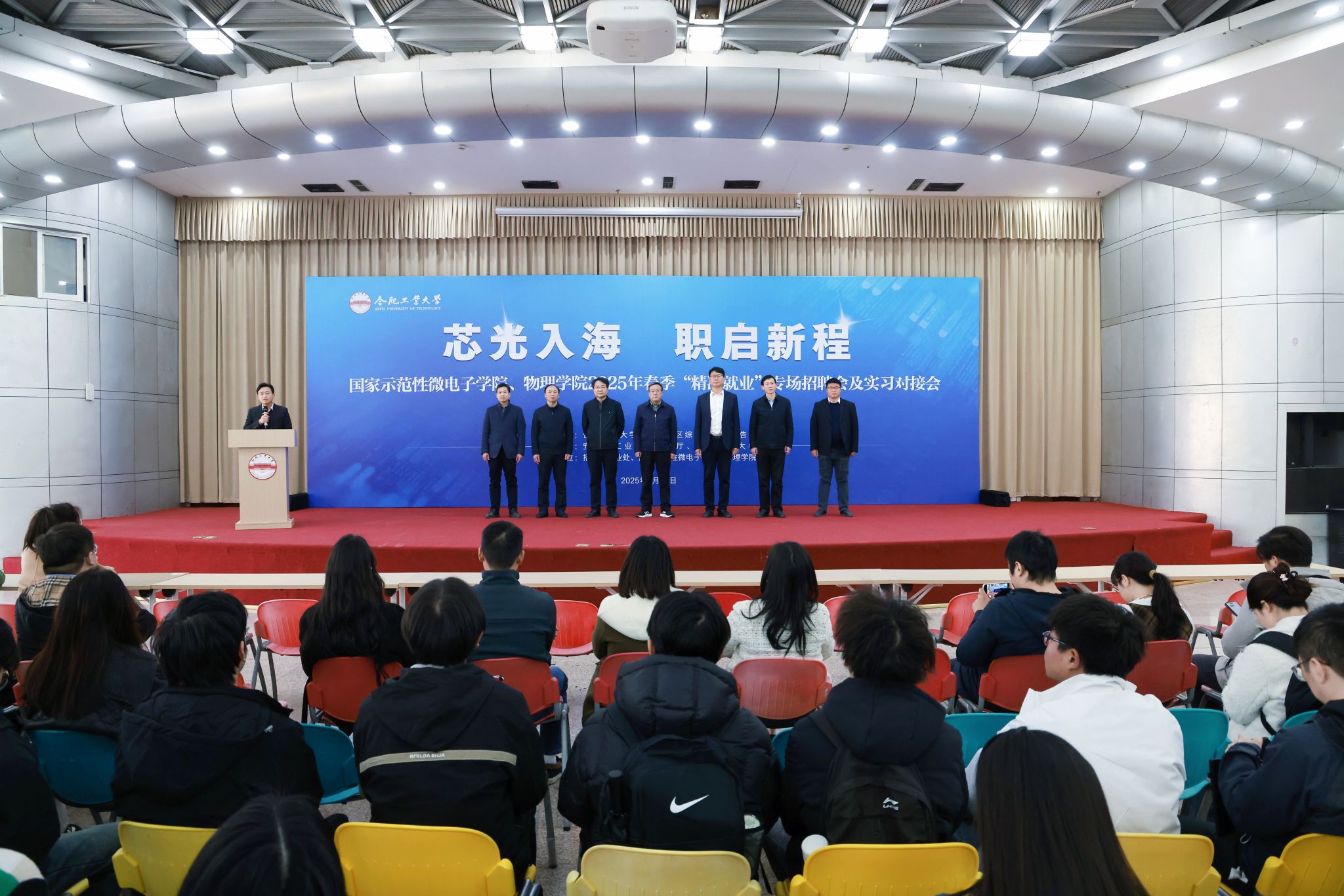 3月19日下午,由安徽省工业和信息化厅与公司共同主办,sunbet、微电子公司联合承办的2025届“芯光汇海·职引未来”春季精准供需对接会在翡翠湖校区综合楼301报告厅成功举办。安徽省工业和信息化厅二级巡视员查汉斌出席启动仪式并致辞。
