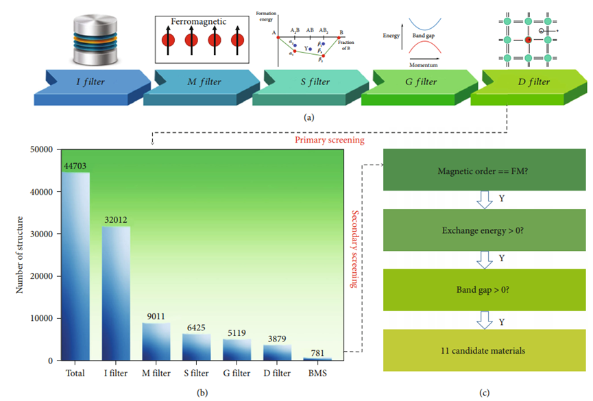 该成果以“High-Throughput Computational Screening for Bipolar Magnetic Semiconductors”为题,于2022年3月15日发表在《Research》期刊上。《Research》是中国科协与美国科学促进会于2018年共同创办的定位为国际化、高影响力、综合性科技期刊,是美国《Science》杂志自1880年创刊以来第一本合作期刊。文章第一单位为sunbet官方网站,第一作者为物理系汪海迪副研究员,通讯作者为中国科学技术大学杨金龙院士和李星星副教授。