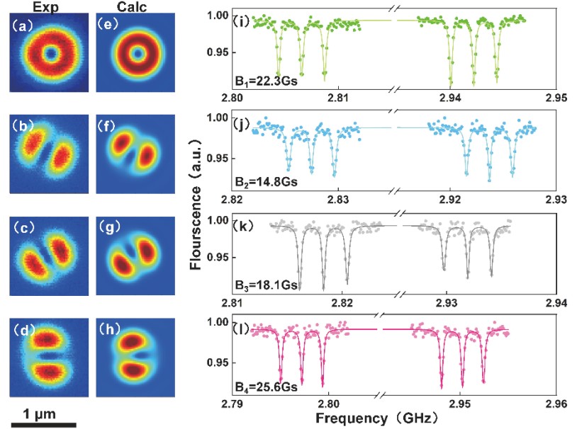 图1. 金刚石NV色心在涡旋光场下的荧光成像和磁场方向测量
