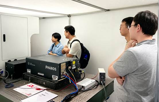 报告中,贾宝华教授以三维纳米打印技术在埃米尺度内(0.1纳米)与材料相互作用为切入点,详细介绍了其团队在智能激光纳米打印系统中取得的突破性进展。该团队通过在激光直写过程中引入3D折射率成像系统和AI辅助系统,实现了加工过程中的实时反馈与调控,达到材料的精准操控和器件的个性化定制。通过开发的先进激光纳米打印系统,已在光纤光栅刻写、集成光子学、全光通讯芯片等领域实现突破性应用进展。整场报告内容前沿、见解深刻,赢得了参会师生的赞誉。报告结束后,参会师生踊跃围绕技术细节、应用前景等方面与贾宝华教授开展热烈讨论,现场学术氛围浓厚。报告结束后,贾宝华教授参观了公司实验室。