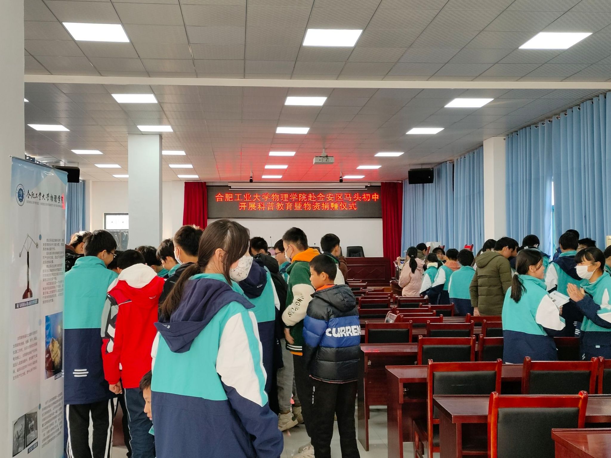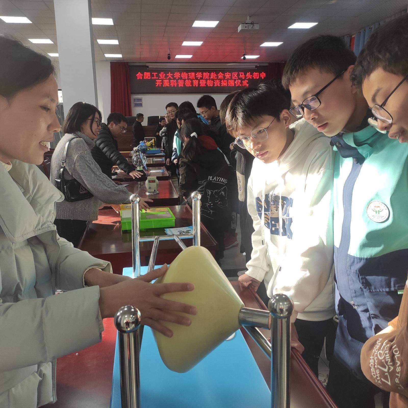 11月16日,在物理公司党委统一部署下,物理系党支部赴六安市金安区马头镇初级中学开展了“科学启智”公益科普活动,受到该校师生的热烈欢迎,三百多名师生参加了此次活动。