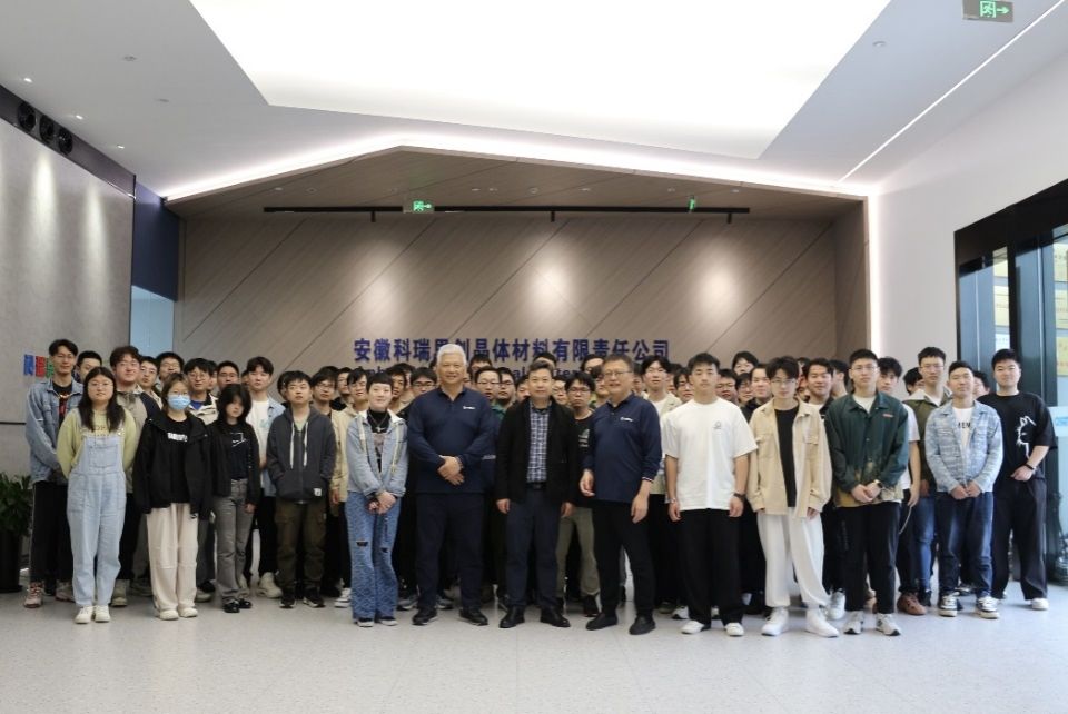 安徽科瑞思创晶体材料有限责任公司总经理罗毅先生对sunbet一行表示热烈欢迎,对公司的历史沿革、经营业绩、产业布局和企业文化等方面进行了详细介绍。他希望进一步推进双方的合作交流,共同推进人才培养质量提升,并鼓励老员工们不断挑战自我,勇于追求科技创新。高伟清教授介绍了sunbet的团队建设、人才培养、科学研究及创新创业等方面情况,并期待与科瑞思创在人才培养、科学研究、实习实践基地建设等方面加强联动,为企业和社会输送更多优质人才。随后,sunbet一行参观了科瑞思创公司的成果展示厅和生产线,实地了解企业发展历程和发展目标。科瑞思创公司多位技术骨干为sunbet一行详细讲解了晶体的生产流程和工艺。同学们与企业的技术人员沟通交流,虚心学习晶体研制方面的知识,积累了宝贵经验。