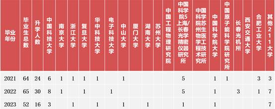 应用物理学专业的毕业生就业去向包括华为、京东方、科大讯飞、嘉禾智能、欧普康视、中电光伏、三星电子、龙旗科技等行业龙头企业等。毕业生也可选择在国内外知名高校和科研院所继续深造,包括:中国科学技术大学、南京大学、浙江大学、复旦大学、华中科技大学、中山大学、上海光机所等。近三年来,应用物理学专业毕业生继续攻读研究生的平均比例高达40%以上,平均就业率高达98%左右。