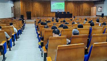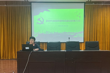 4月12日下午15:30,sunbet在翡翠湖校区图书馆报告厅开展意识形态及师德师风建设主题教育系列活动,全院教职工参会。党委书记巩惠玲以“建设具有强大凝聚力和引领力的社会主义意识形态” “新时代加强师德师风建设的着力点”为主题,讲授专题党课。
